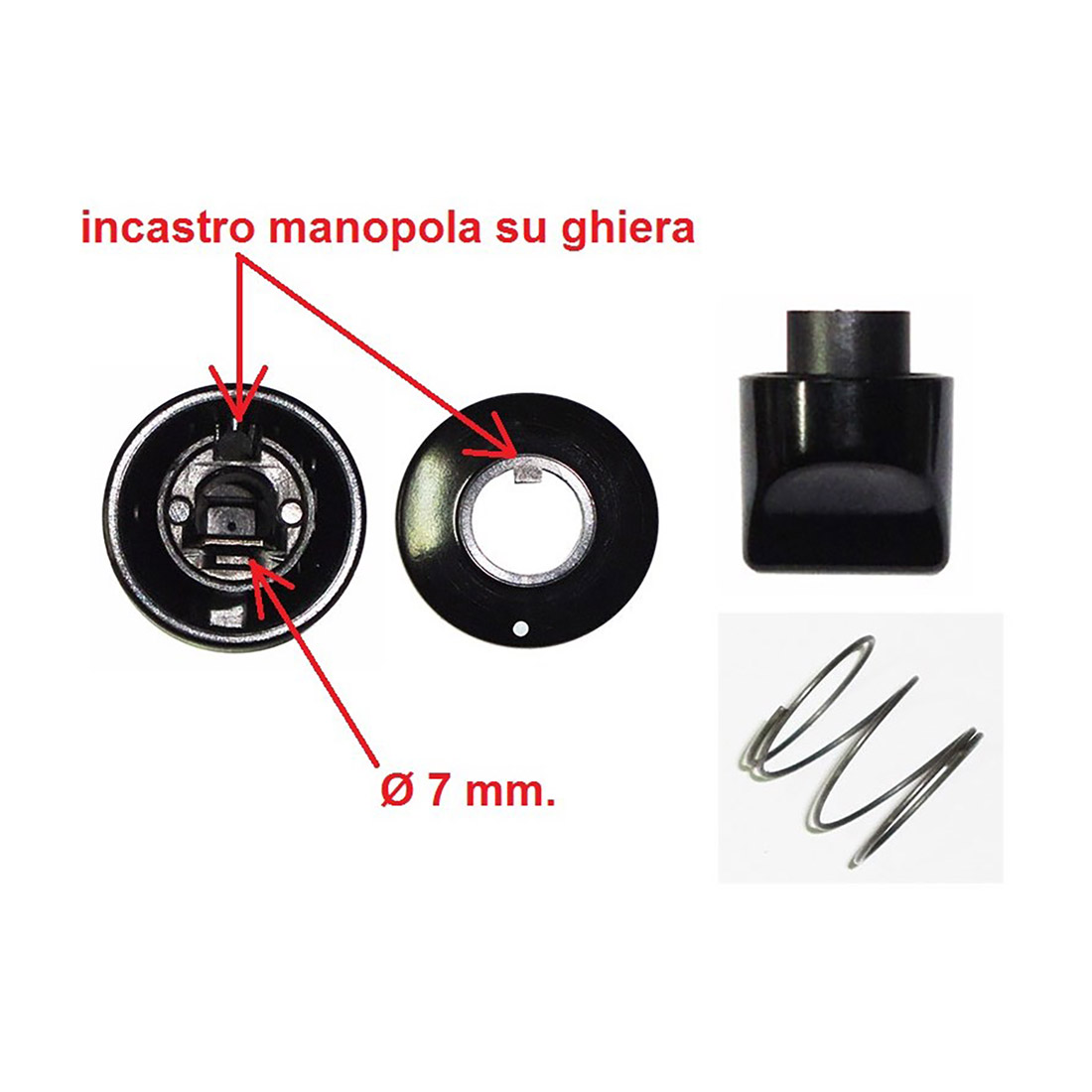 Ricambio compatibile: MANOPOLA ARISTON NERA FORO 7 G+9. Componente tecnico per manutenzione e sostituzione su apparecchi domestici.